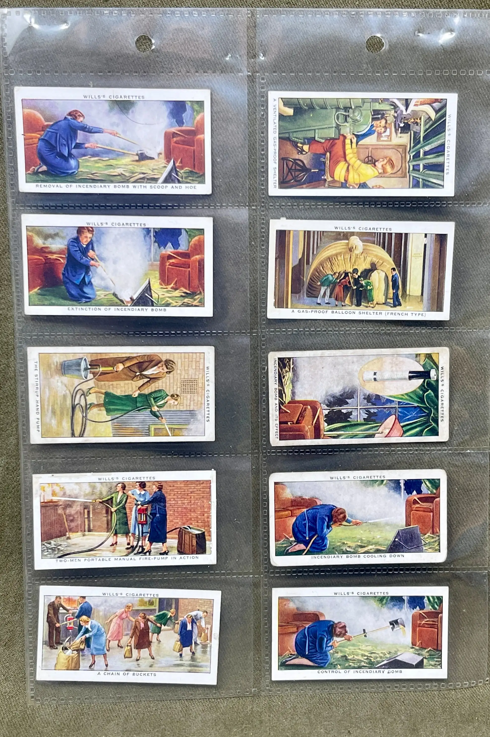 Produced by the Imperial Tobacco Company, these cards reflect the government’s push to ensure civilian preparedness amidst rising tensions in Europe. The detailed illustrations and accompanying descriptions highlight various scenarios and safety tips, including protection from gas attacks and proper use of emergency equipment. Collecting these cards not only engaged the public but also helped disseminate critical information in a time of growing unease. Today, this complete set is a collector's item, appreciated both for its nostalgic value and as a poignant reminder of the era’s atmosphere. It's sought after by collectors and historians alike, offering insight into the everyday lives and resilience of the British people on the eve of WWII